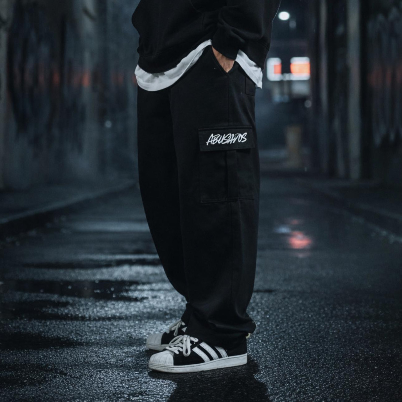 Calça cargo de modelagem ampla, inspirada no streetwear pesado. Possui bolsos laterais funcionais com aplicação da marca, trazendo estética utilitária e presença forte. O tecido encorpado garante conforto e durabilidade, enquanto o caimento largo entrega aquele visual imponente que a rua respeita. Peça-chave para looks urbanos e ousados.